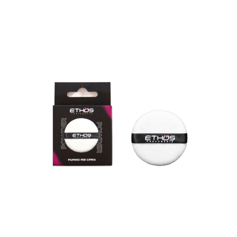 Il piumino per cipria professionale Ethos Profumerie è ideale per l’applicazione di cipria in polvere.