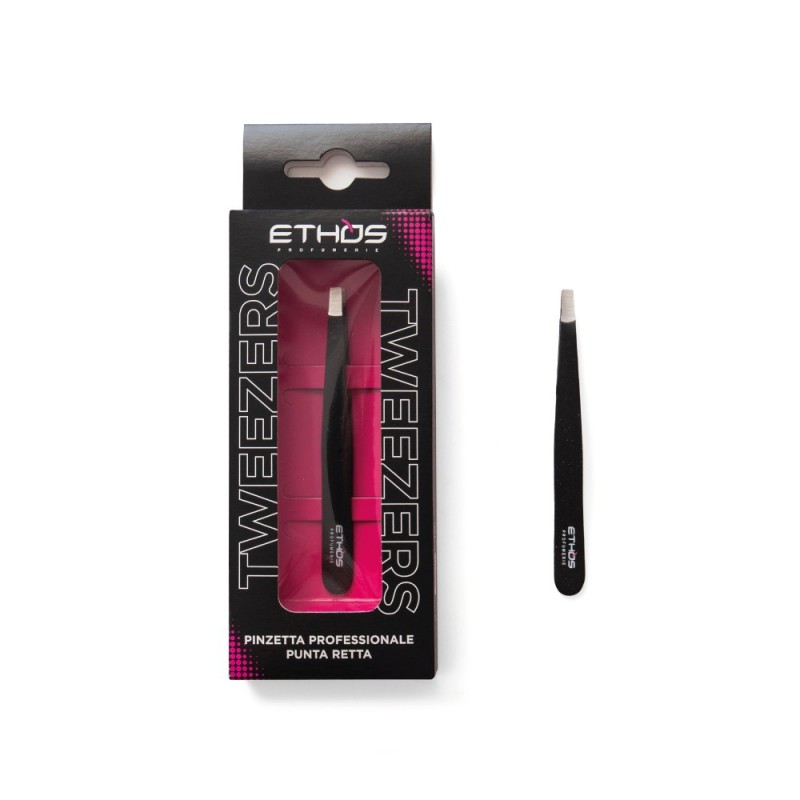 La pinzetta professionale con punta retta Ethos Profumerie è ideale per prelevare un gruppo di peli in una sola volta senza irritare la pelle circostante.