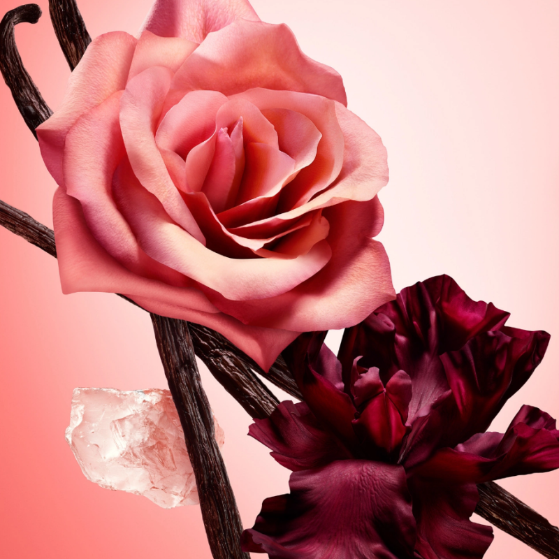 Il cuore floreale è avvolto dalla sensualità dei muschi infusi di vaniglia e di un caldo legno di sandalo, mentre l’assoluta di vaniglia conferisce una sfaccettatura intensamente inebriante alla fragranza.