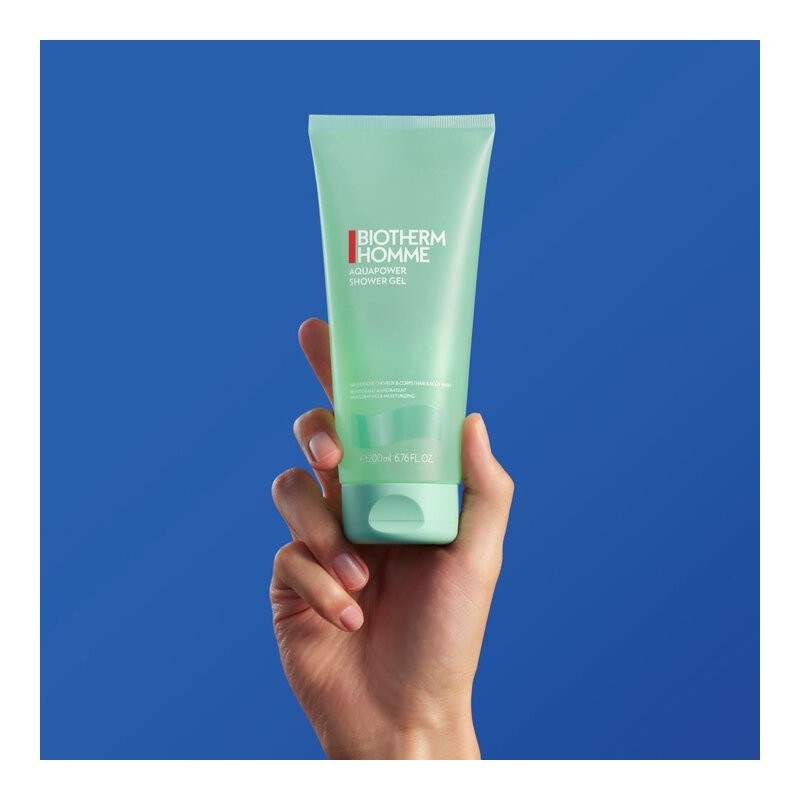 Il gel doccia Aquapower Homme lascia sulla pelle una potente sensazione di idratazione e freschezza.