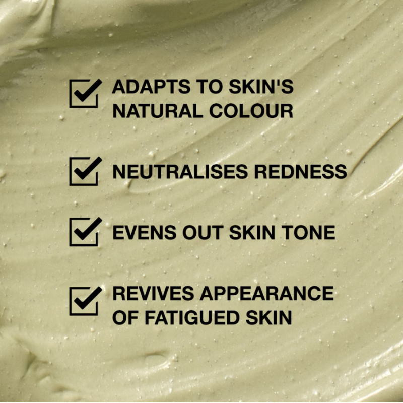 Un'innovativa crema dal verde al beige che si adatta al colore naturale della pelle per neutralizzare i rossori e uniformare il tono della pelle.