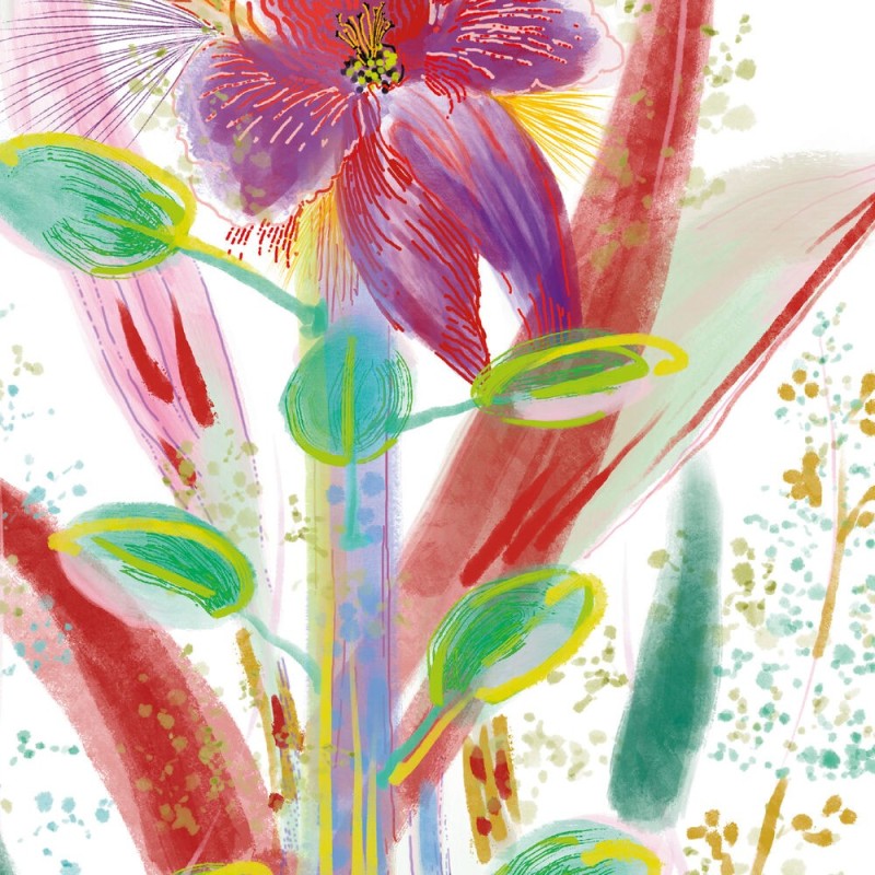 Un bouquet tropicale dopo la pioggia: fiori esotici che danzano in sintonia con tuberosa e violetta.