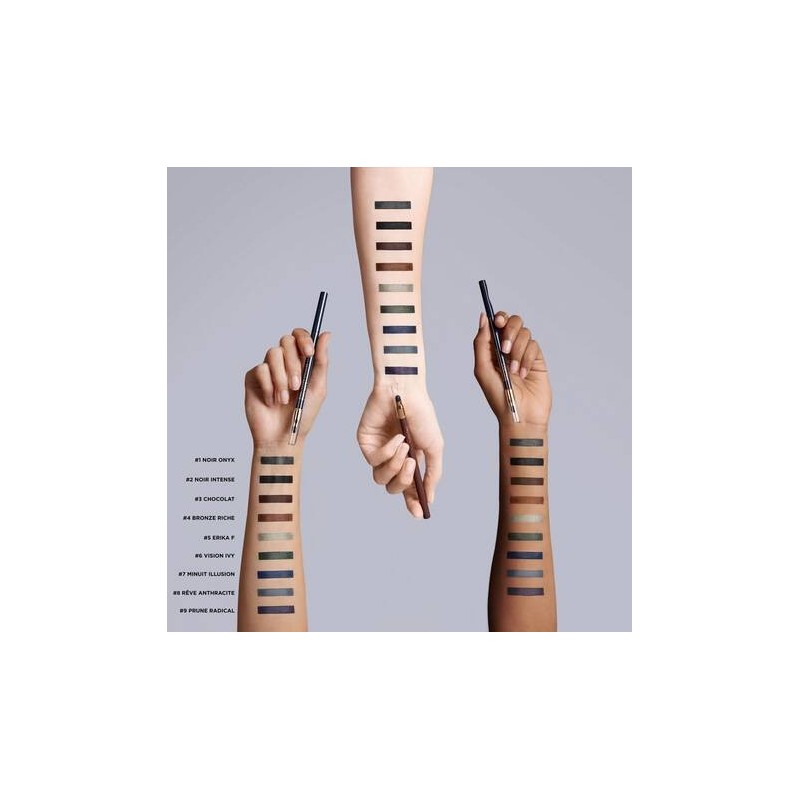 La formula ultra pigmentata di Le Sylo Waterproof assicura scorrevolezza e una texture cremosa. Le doppie estremità, punta retraibile e spugnetta sfumante, consenteono di creare linee precise e a lunga tenuta. Definisci con precisione la rima cigliare usando la punta ultra sottile o sfumala con l'altra estremità.