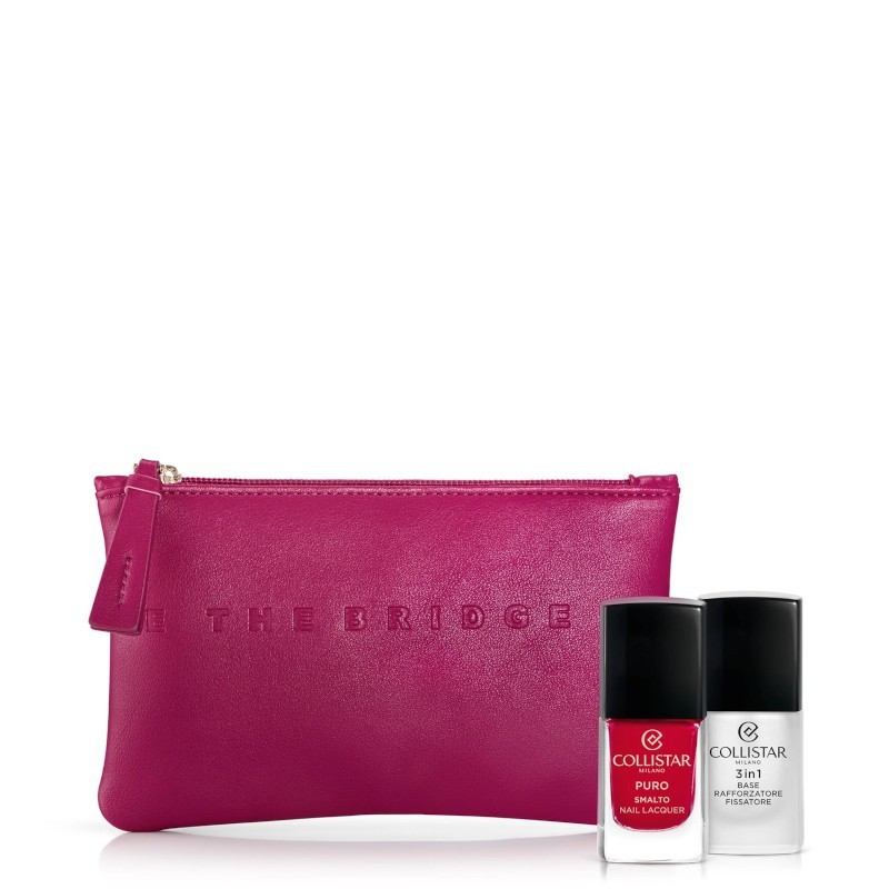 Le Beauty-Bag dei cofanetti regalo Collistar portano con sé l'eleganza e lo stile inconfondibili di The Bridge, grazie all'iconico maxi-logo impresso sul fronte. Ma non solo, le trousse sono anche disponibili in diversi colori moderni e versatili come il fucsia, il blu e il cuoio, per soddisfare tutti i gusti e le esigenze.