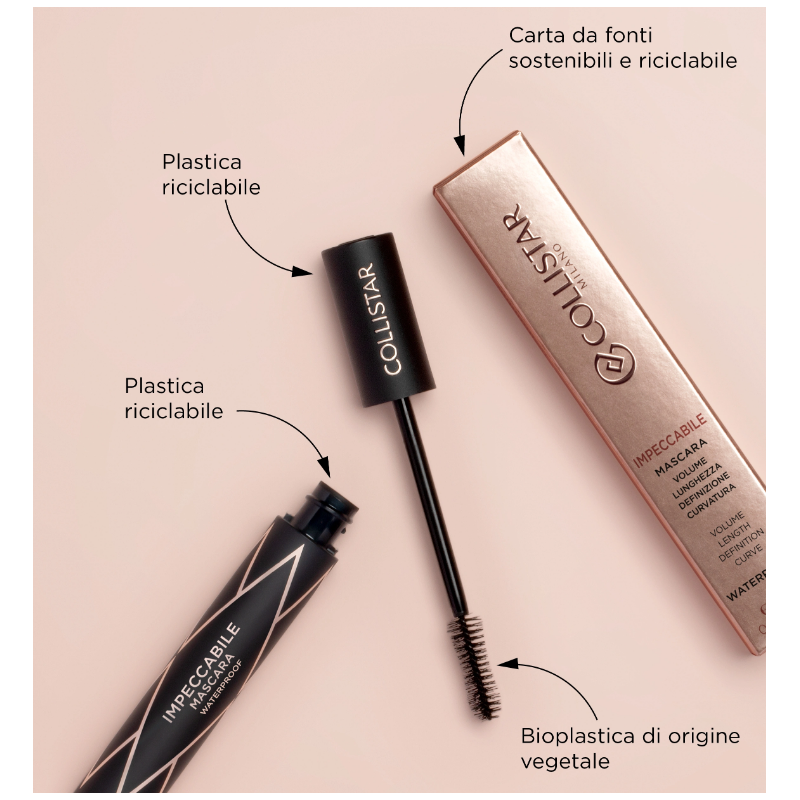 Collistar Clean Research® presenta Impeccabile Mascara, il primo mascara totalmente riciclabile che ti garantisce tutto ciò che cerchi in un prodotto per le tue ciglia: volume, lunghezza, definizione e curvatura. E per non dover fare delle scelte, adesso c'è anche la versione Waterproof, per essere impeccabili in ogni situazione.