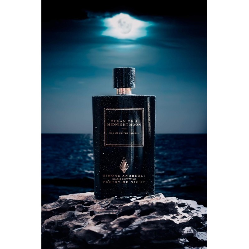 Immagina di trovarsi su una scogliera di notte, circondato dalla vegetazione e con un panorama mozzafiato sul mare. Questo è lo scenario che viene evocato dalla fragranza Ocean of a Midnight Moon di Simone Andreoli. L'incontro di note verdi, marini ed aromatiche crea un viaggio sensoriale unico, ispirato a una notte di luna piena sull'oceano.
