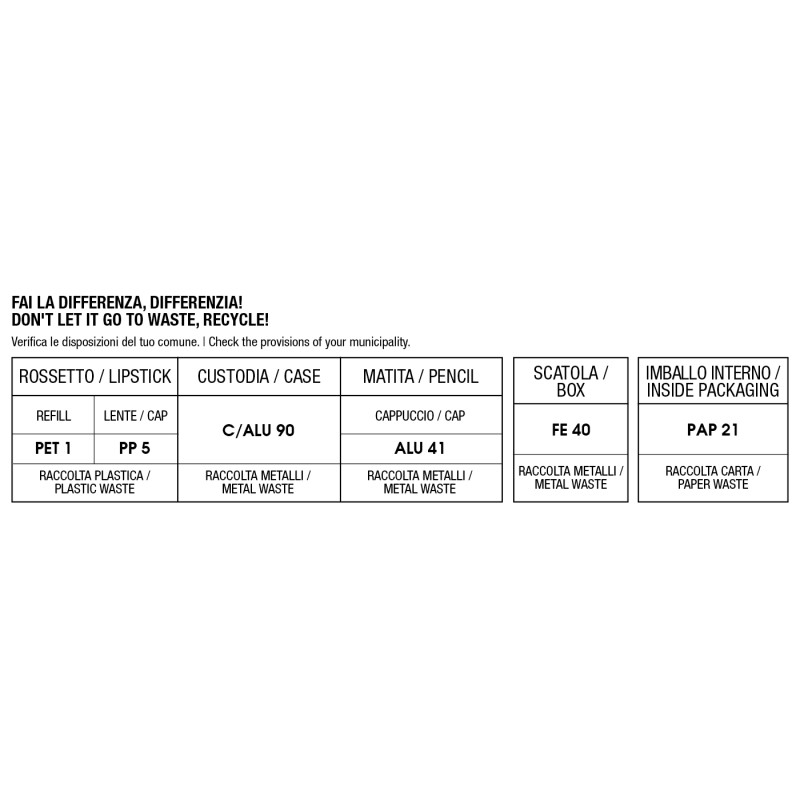 Una matita ultra performante e dalle prestazioni eccezionali: long lasting, water resistant e no transfer.