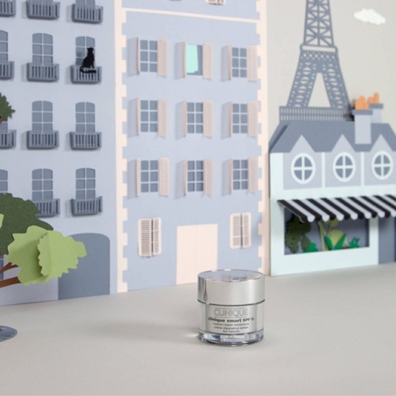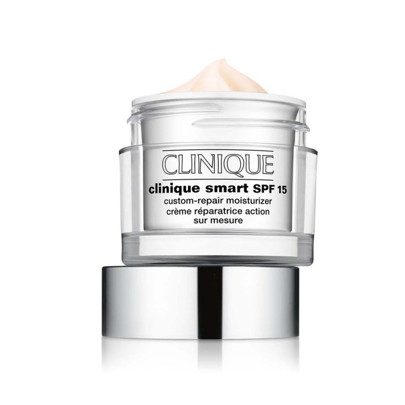 Clinique Smart Crema Riparatrice su Misura SPF 15 contiene un indice di protezione solare SPF 15 e una combinazione di antiossidanti, che proteggono la pelle dalle aggressioni esterne e aiutano a prevenire ulteriori segni di invecchiamento. Disponibile in tre diverse varianti per adattarsi alle esigenze specifiche delle pelli secche e molto secche, delle pelli da secche a miste e delle pelli da miste a grasse.