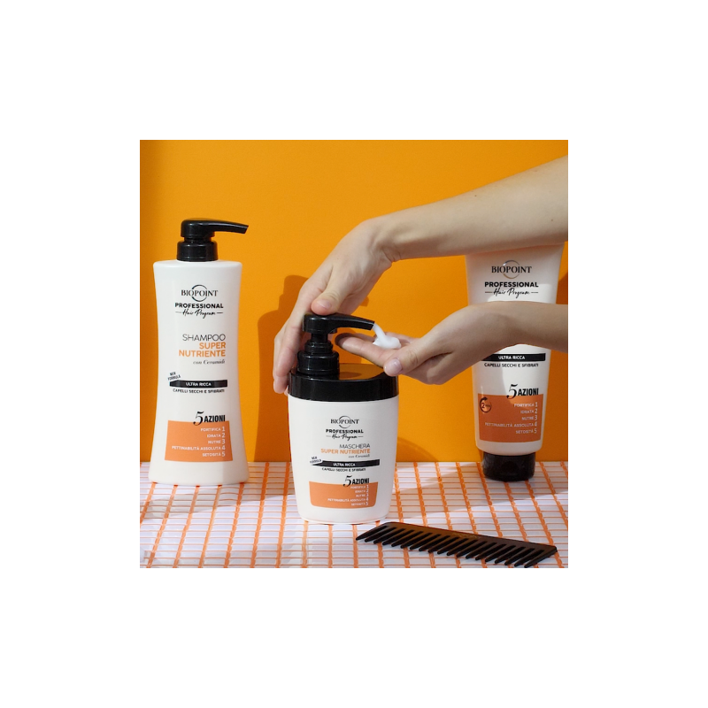 La Maschera Super Nutriente con 5 Azioni dona nuova vitalità e benessere ai capelli secchi e sfibrati, per un risultato professionale direttamente a casa tua.