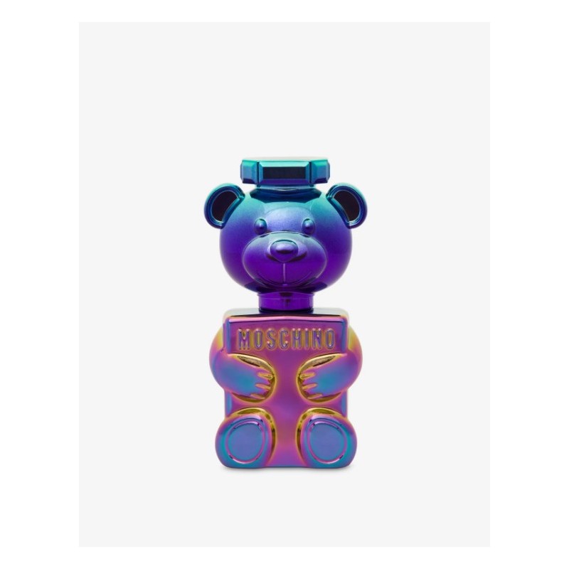 Flacone a forma di Moschino Teddy Bear che richiama i fondali marini e la madreperla tahitiana.