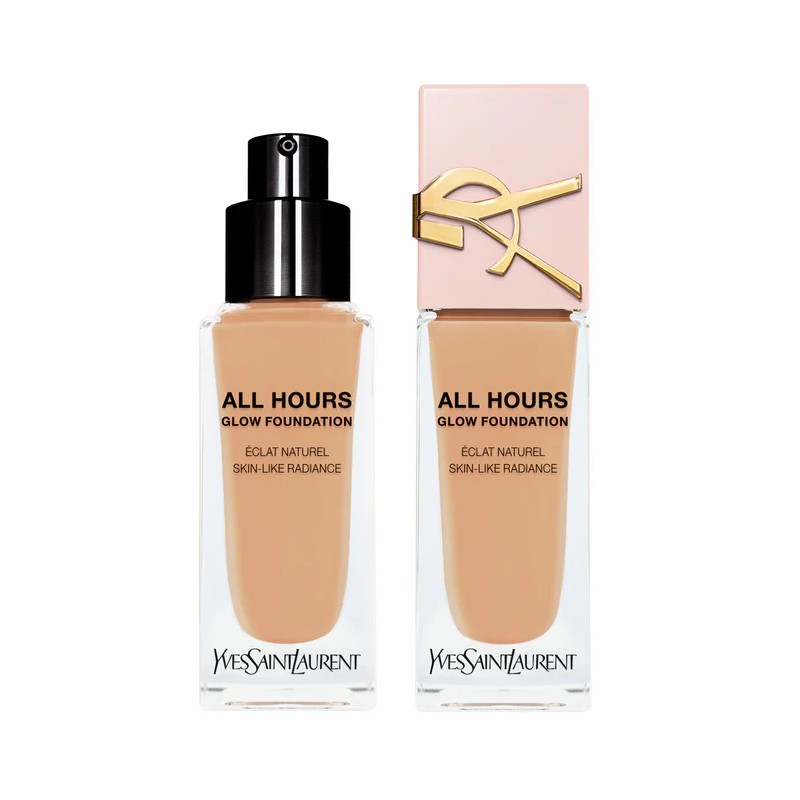 Il fondotinta All Hours Glow è una formula leggera che offre una copertura modulabile con una finitura luminosa effetto seconda pelle.