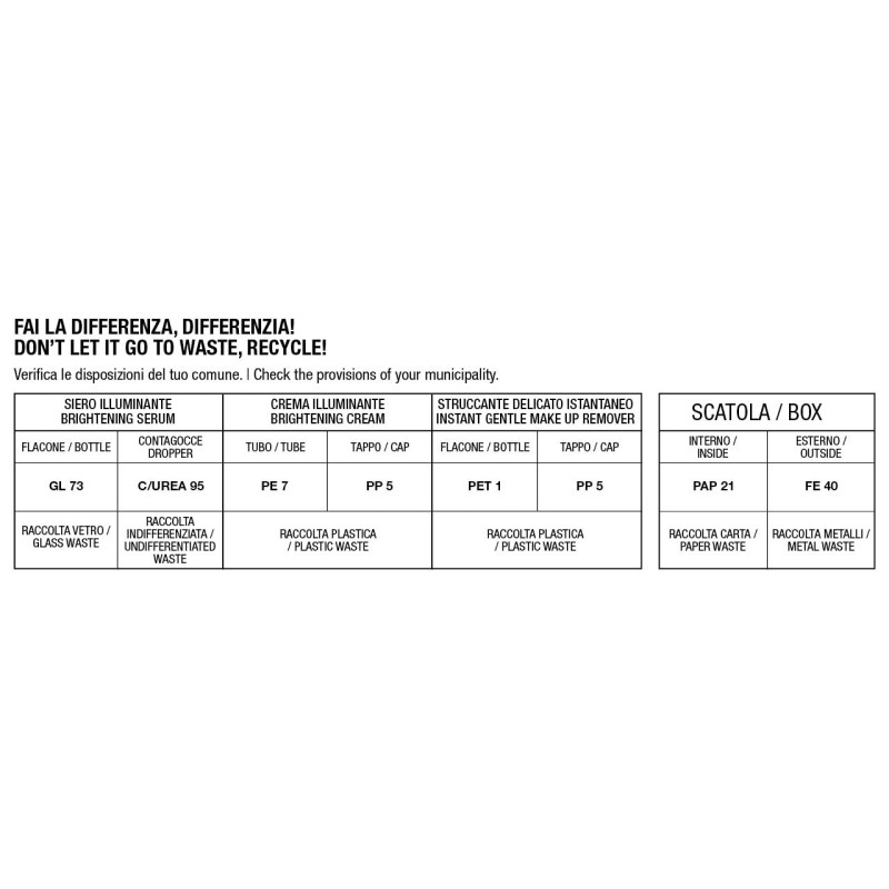 Per un’azione potenziata e risultati più veloci e visibili utilizzare –prima della crema- Radiance Siero illuminante alla Vitamina C.