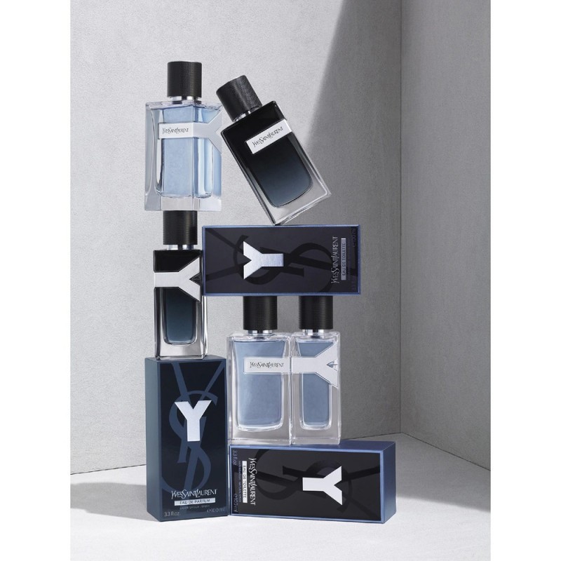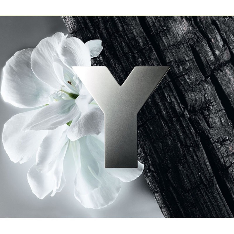 La fragranza di Y è definita come un white & dark fougere virile, che unisce il contrasto tra la coinvolgente freschezza degli aldeidi bianchi e dell'assoluta di geranio alle note intense di incenso e all'aroma sensuale dell'ambra grigia.